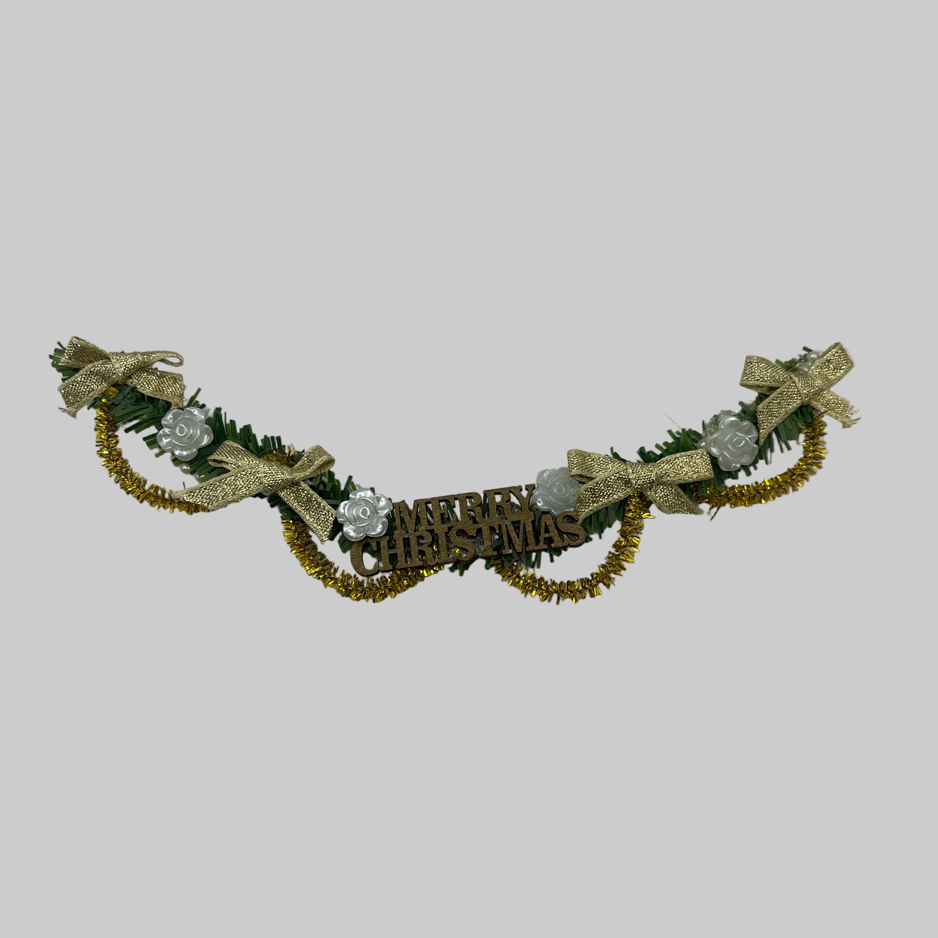 Transform your dolls house into a festive wonderland with this charming 18cm Christmas garland, complete with elegant gold bows. Perfect for adding seasonal sparkle to miniature rooms, this delightful decoration captures all the magic of the holidays in miniature form. Drape it along shelves, doorways, or mantels for instant yuletide charm. A must-have for collectors who love bringing festive cheer to their tiny homes.