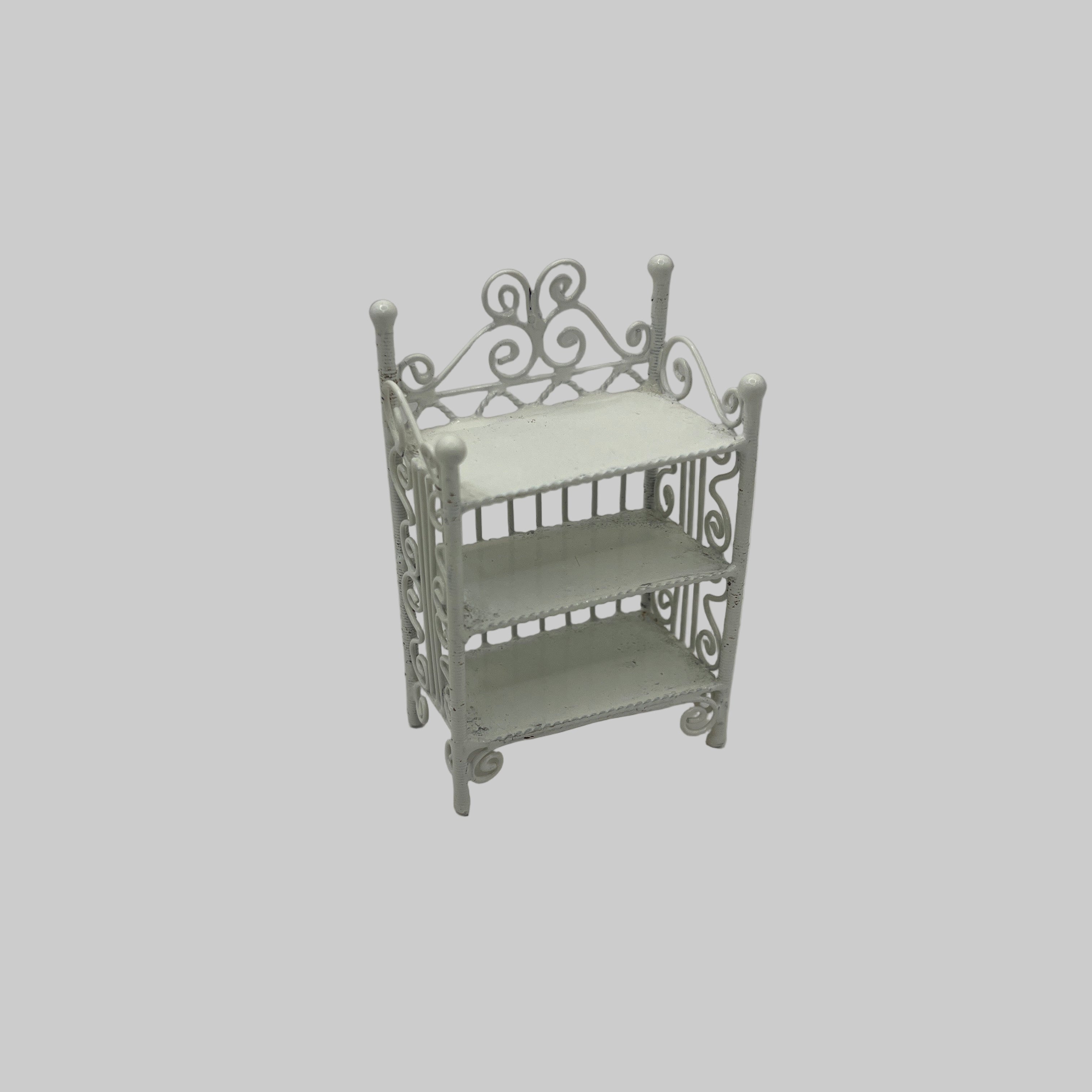 Add a splash of charm to your dolls house with this white metal shelving unit. Perfectly sized, it keeps tiny treasures and trinkets organised while adding a neat, stylish touch.